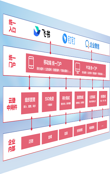 对协作平台提供支持服务,,,支持企业应用与协作平台对接,,,包含组织同步、、消息集成、、、待办集成等。。。支持目前主流的协作平台:钉钉、、企微和飞书。。。